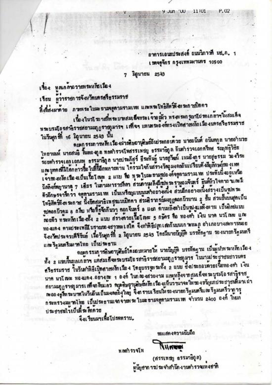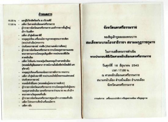 สร้างขึ้นเพื่อแจกให้กับประชาชน เนื่องในโอกาสที่ สมเด็จพระบรมโอรสาธิราช สยามมกุฎราชกุมาร เสด็จพระราชดำเนินทรงเปิดศาลหลักเมืองนครศรีธรรมราช เมื่อวันที่ 16 มิถุนายน 2543