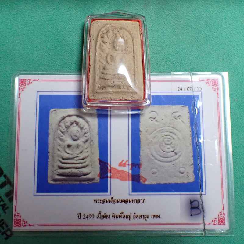 พระสมเด็จมงคลมหาลาภ วัดสัมพันธวงศ์ พิมพ์ใหญ่หลังยันต์ เนื้อผง ปี 2499 กรุงเทพฯ (แม่ชีบุญเรือน อธิษฐานจิต)