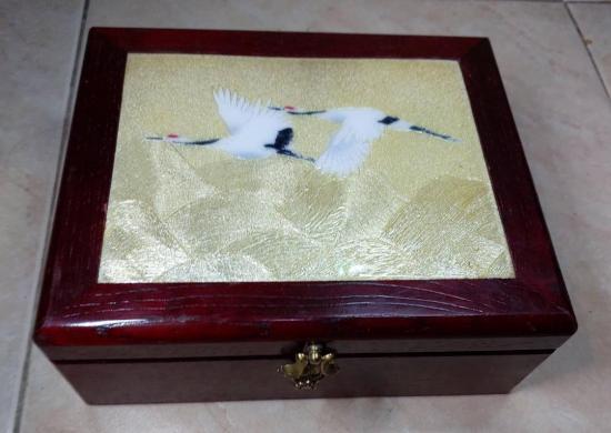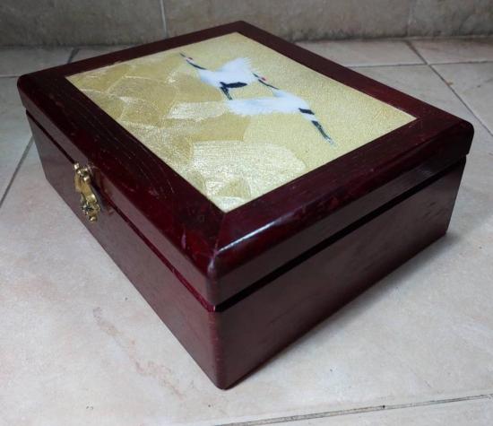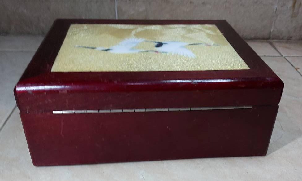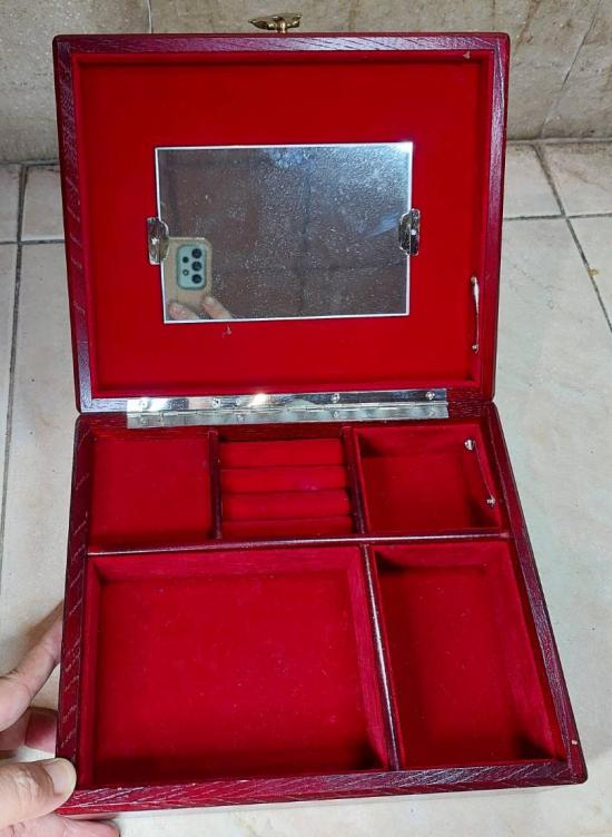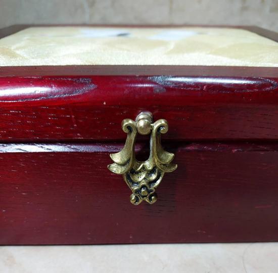 กล่องเครื่องประดับเก่าไม้เนื้อแข็ง งานหัตถกรรมไม้มะฮอกกานี