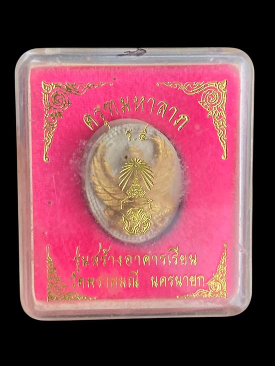 Q192. เหรียญครุฑมหาลาภ ร.5 รุ่นสร้างอาคารเรียน วัดพราหมณี จ.นครนายก (เคาะเดียวแดง)
