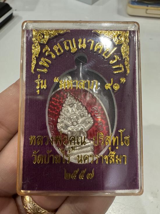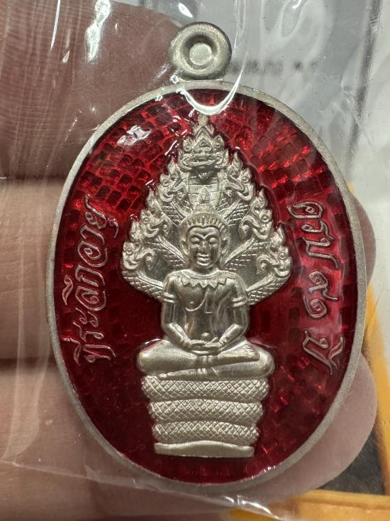 เหรียญนาคปรก รุ่นมหาลาภ91 ปี2557 เนื้อเงิน ลงยาสีแดง มีกล่อง