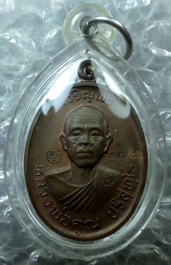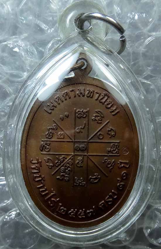 หลวงพ่อคูณ เหรียญเจริญพรบน 2 พรหมเทพ เนื้อทองแดงมันปู บล๊อคทองคำ เลข No.975 พร้อมเลี่ยม
