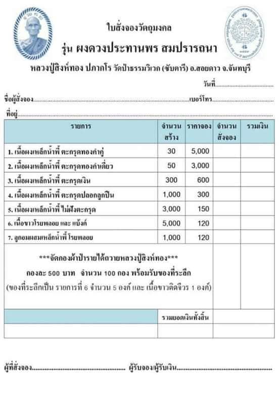 พระผงดวงประทานพร สมปรารถนา เนื้อผงเหล็กน้ำพี้ หลวงปู่สิงห์ทองปภากโร วัดป่าธรรมวิเวก(ซับตารี) อายุ106ปี อริยะสงฆ์ 5 แผ่นดิน ที่ระลึกร่วมสร้างโบสถ์