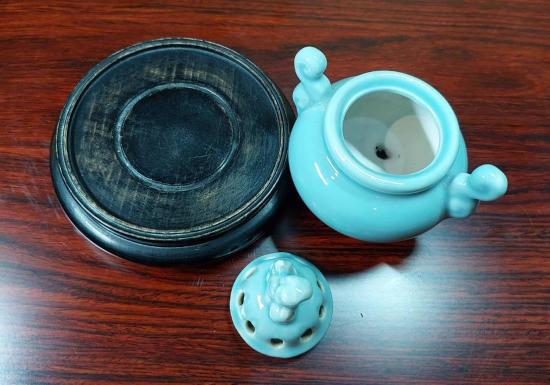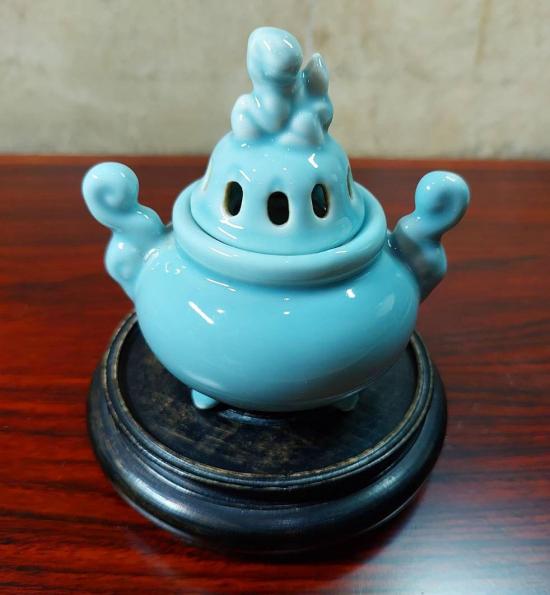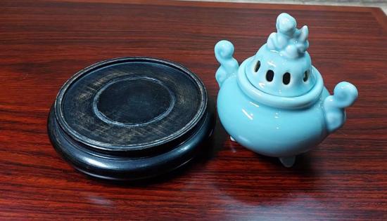 โถกำยานสิงโต งานศิลาดล พร้อมแท่นวาง