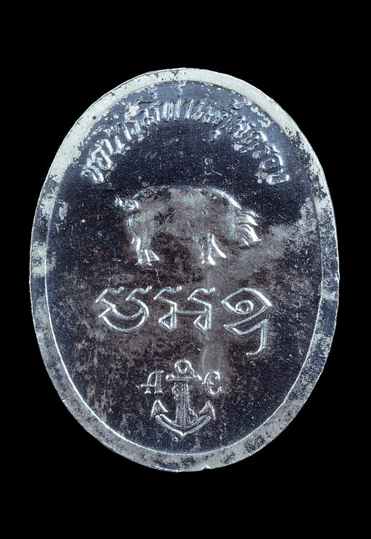 เหรียญหลังหมู ขอบารมีท่านคุ้มครอง ( เนื้อเงิน ลงยาน้ำเงิน ) พ.ศ.2538 ( ยากระเทาะนิดหน่อย )