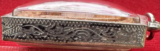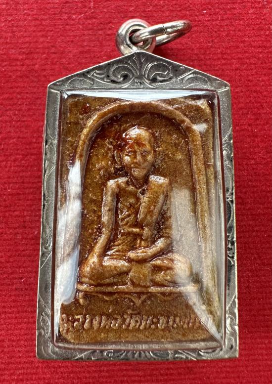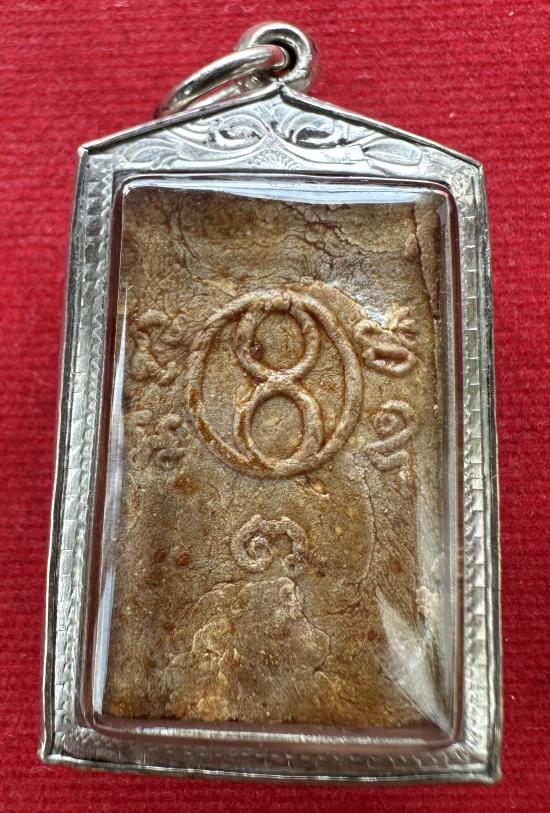 พระผงน้ำมันพิมพ์หลวงปู่ศุข หลังยันต์ วัดปากคลองมะขามเฒ่า ปี 2508 เลี่ยมกรอบเงิน