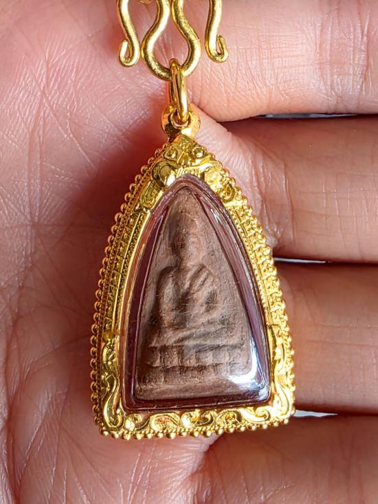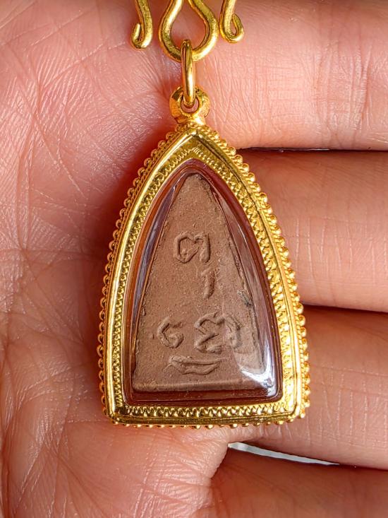 พระพุทโธน้อย คุณแม่บุญเรือน วัดอาวุธ กทม. พิมพ์กลาง หน้าเอียงไหล่ลู่ หลังยันต์พุทโธคมชัดลึก เนื้อดิน ปี 2494 มาพร้อมบัตรรับรอง เลี่ยมทองเปอร์เซ็นสูง