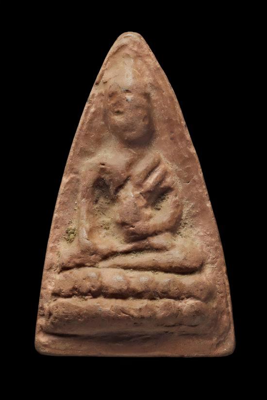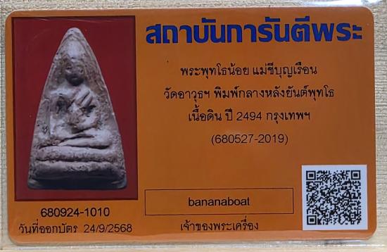 พระพุทโธน้อย คุณแม่บุญเรือน วัดอาวุธ กทม. พิมพ์กลาง หน้าเอียงไหล่ลู่ หลังยันต์พุทโธคมชัดลึก เนื้อดิน ปี 2494 มาพร้อมบัตรรับรอง