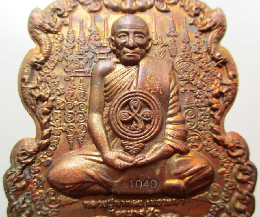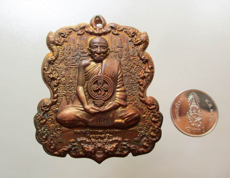 เหรียญรูปเหมือน หลวงปู่กาหลง หลังพระนารายณ์ขว้างจักร เนื้อโลหะสำริดขอมโบราณ ยิงเลเซอร์โค๊ต ยันต์ และหมายเลข สภาพสวยสมบูรณ์ !!