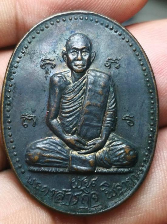 เหรียญหลวงพ่อผัน วัดราษฎร์เจริญ อำเภอหนองแค จังหวัดสระบุรี เนื้อทองแดงรมดำ สภาพตามรูปราคาเบาๆ |