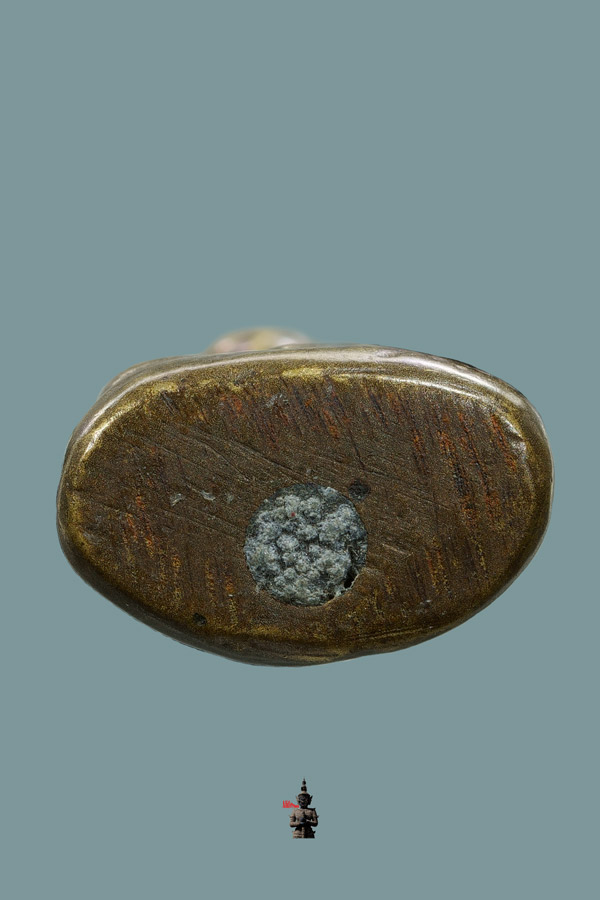 พระเกจิหล่อไม่ทราบที่อุดผงเนื้อแกร่งแน่นสีเทา องค์ขนาดน่ารักเนื้อหาเป็นทองเหลืองหล่อมีอายุน่าจะก่อน2500สูง2.3ซม.รวมหู เสียดายไม่ทราบที่ครับ