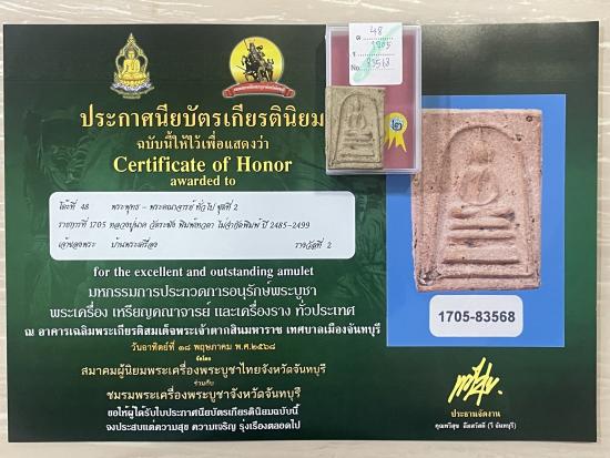 สร้างปี 2495 สภาพสวย สมบูรณ์ ไม่หักไม่ซ่อม รับประกันพระแท้ ดูง่าย ใบประกาศรางวัลที่2งานสมาคม