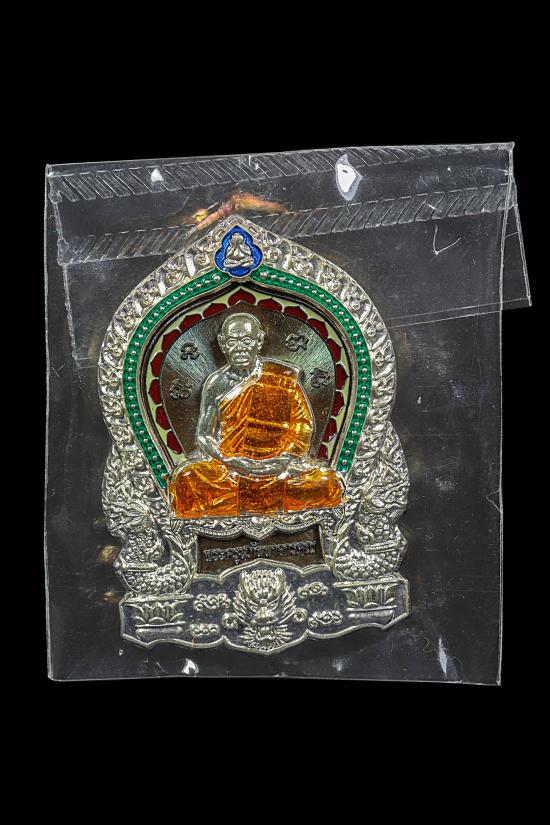 เหรียญใบเสมามังกร มงคลอายุ 90 ปี หลวงพ่อสิน เนื้อนวะหน้ากากลงยา พร้อมกล่องเดิม แดง 100 no.1