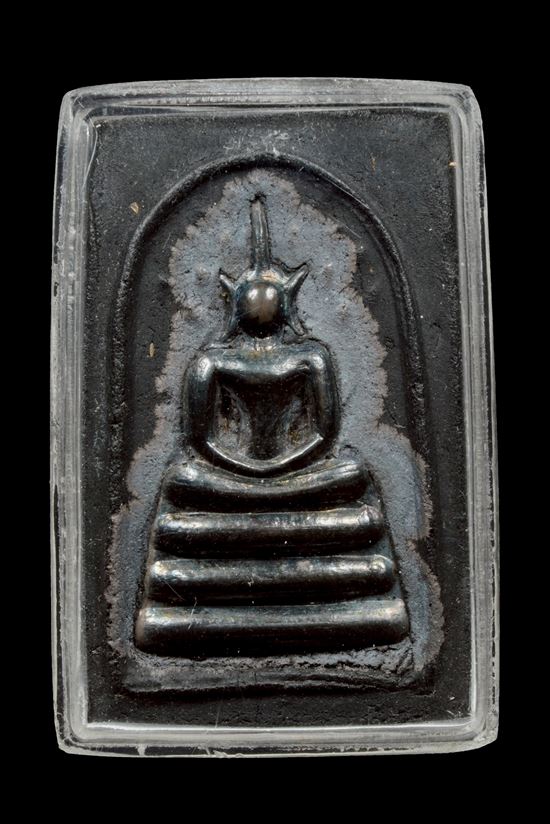 พระสมเด็จหน้ากากเงิน หลวงพ่อทองอยู่ วัดใหม่หนองพะอง พิมพ์หลังเสือ เนื้อผงใบลาน ปี 2510 สวยเดิมครับ