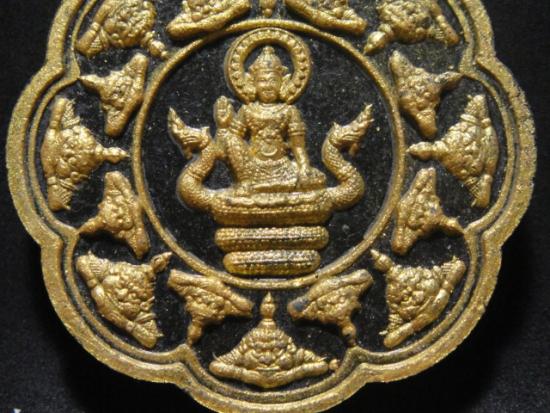 วัดใจเคาะเดียว.......120.......พระผงจตุคาม รุ่นหลักเมืองพุทธาคมเขาอ้อ เนื้อผงดำปัดทอง ปี 49 ตอก 2 โค๊ต สวย