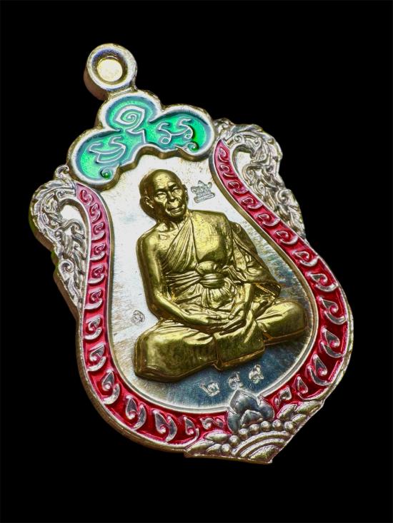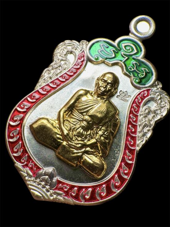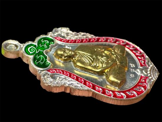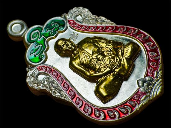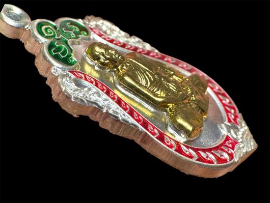 2. เนื้อเงินองค์ทองลำอู่ ปั๊ม 2 หน้า ลงยา 3 สี = 385 เหรียญ