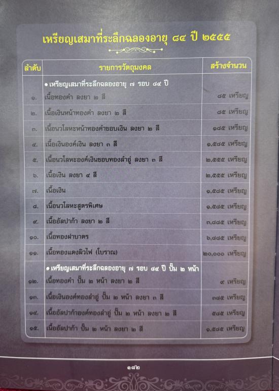 เหรียญเสมา 7 รอบ ปั๊ม 2 หน้า จำนวนการจัดสร้างมีดังนี้