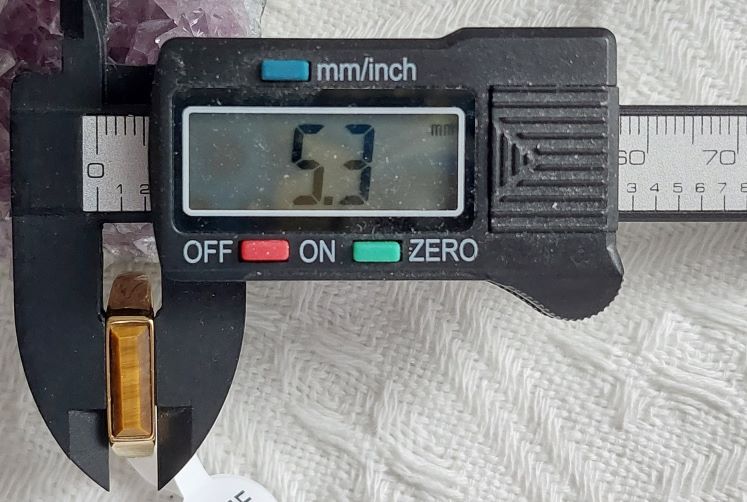 แหวนหัวไทเกอร์อายหรือหินตาเสือ ตัวเรือนแหวนเป็นสแตนเลสงานเลเซอร์ทองแข็งแรงทนทาน ขนาดแหวนเบอร์9 ขนาดแหวนตามรูปประกอบครับ