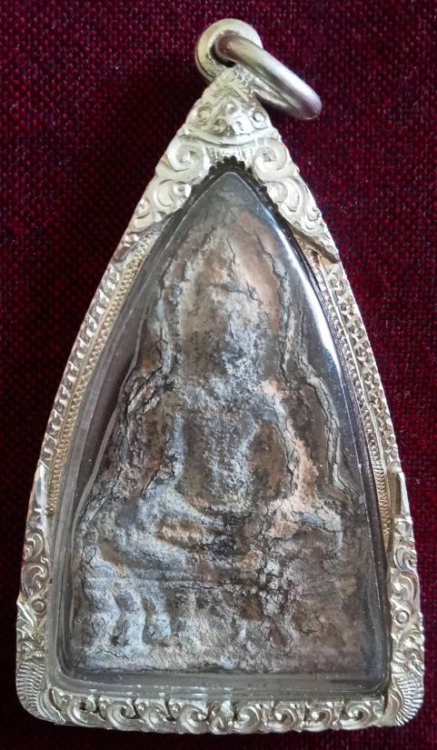 เนื้อชินเงิน ซึ่งมีอายุการสร้างในราวประมาณกว่า 400 ปีเศษมาแล้ว คือ มีอายุการสร้างอยู่ในรุ่นราวคราวเดียวกันกับของกรุวัดนางพญา องค์นี้แท้ดูง่ายมาก ผิวปรอทแห้งสนิท ผิวระเบิดชัดเจน สนิมตีนกา เกล็ดกระดี่มาครบ แต่สภาพยังสวย แท้ ดูง่ายตามรูป มาพร้อมเลี่ยมเงินแกะลายยกซุ้มหนา ๆ อย่างสวย ส่งฟรีทั่วไทย รับประกันตามกฎครับ |