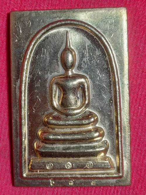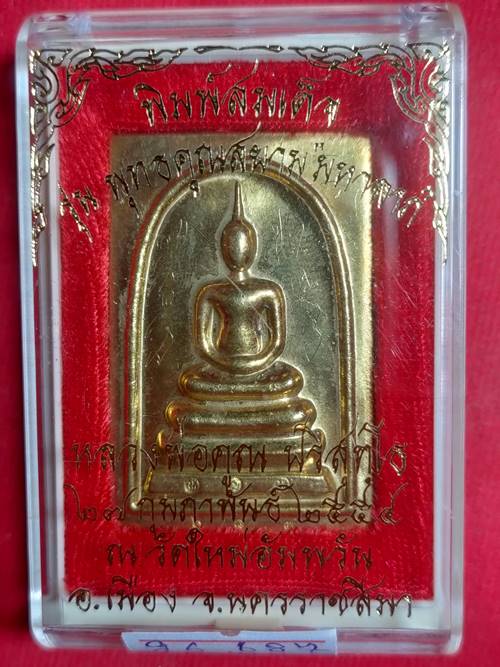 พระพิมพ์สมเด็จ หลังพิมพ์รูปเหมือน หลวงพ่อคูณ รุ่น พุทธคุณสยามมหาลาภ ออกวัดใหม่อัมพวัน ปี 54 เนื้อ ทองฝาบาตร หมายเลข 687 สภาพสวย เคาะเดียวแดง