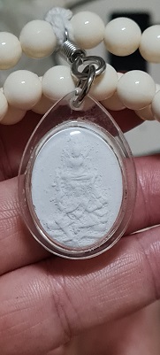 พระผงจักรพรรดิ​ 2​ หน้า​ กายสิทธิ์​หลัง​พระเหนือ​พรหม​มียันต์​ จัดสร้างปี​ 2542 )หลวงตาม้า วัดถ้ำเมืองนะ พร้อม เลี่ยมจากวัดพร้อมประคำ |
