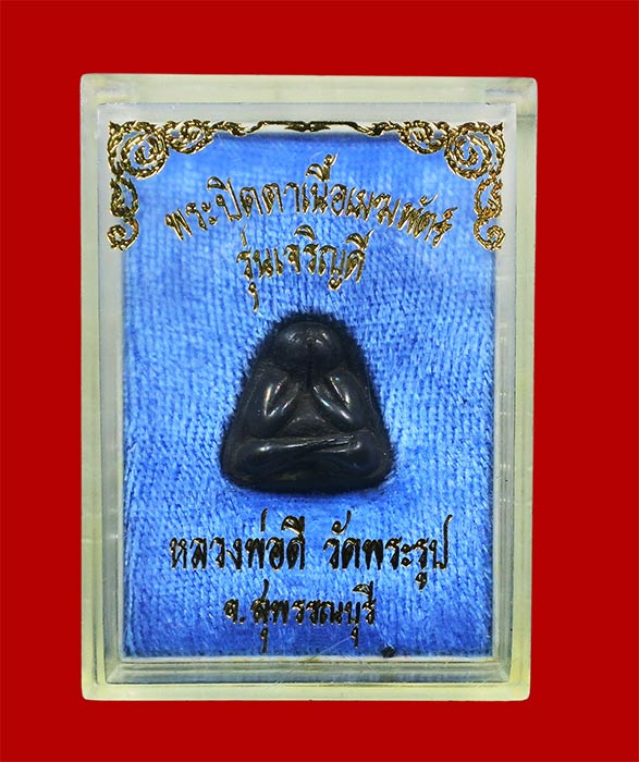 พระปิดตาหลังตัน รุ่นเจริญดี เนื้อเมฆพัตร หลวงพ่อดี วัดพระรูป ปี 2534 กล่องเดิม |