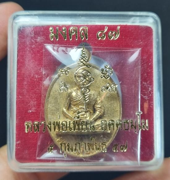วัดใจเคาะเดียว....120....เหรียญหล่อโบราณ เต็มองค์ รุ่น มงคล ปี 2557 หลวงพ่อเพี้ยน เนื้อทองระฆัง หมายเลข ๓๐๔๐ พร้อมกล่อง