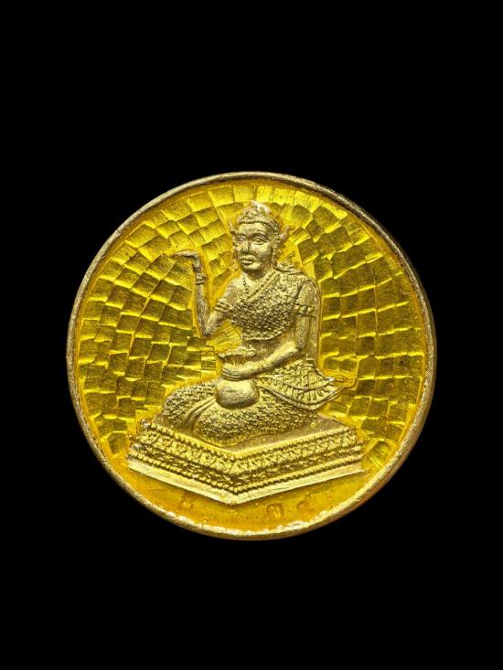 เหรียญนางกวัก หลวงปู่ม่น เนื้อเงินกะไหล่ทองลงยา เลข 2 หลัก