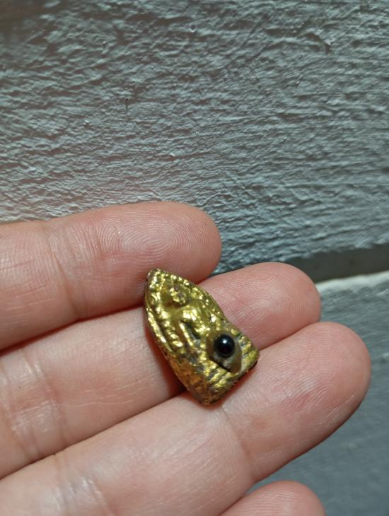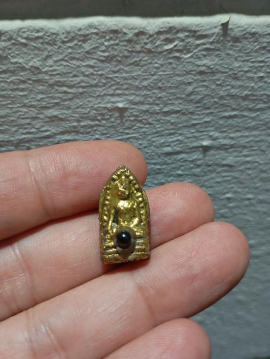 พระรอดพิธีเสด็จกลับ ปี 2511 พิธีปลุกเสก วัดถ้ำเขาเงินจังหวัดชุมพร เนื้อผงว่านสบู่เลือด พิมพ์พระคะแนน ติดเม็ดแร่เหล็กไหล สภาพสวยปิดทองเก่า อ.ชุม ไชยคีรี ปลุกเสก