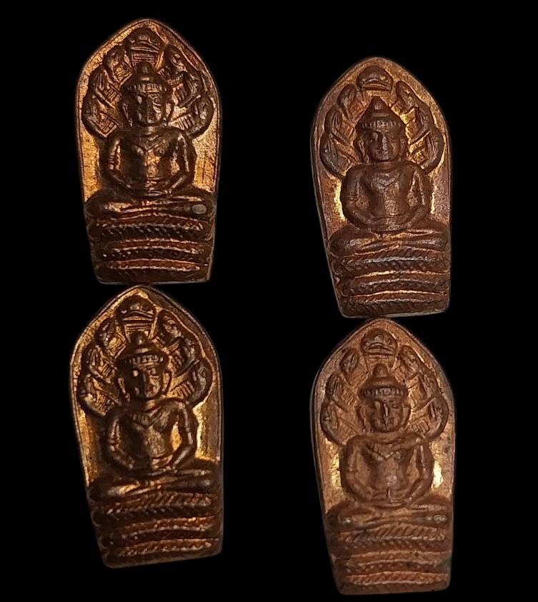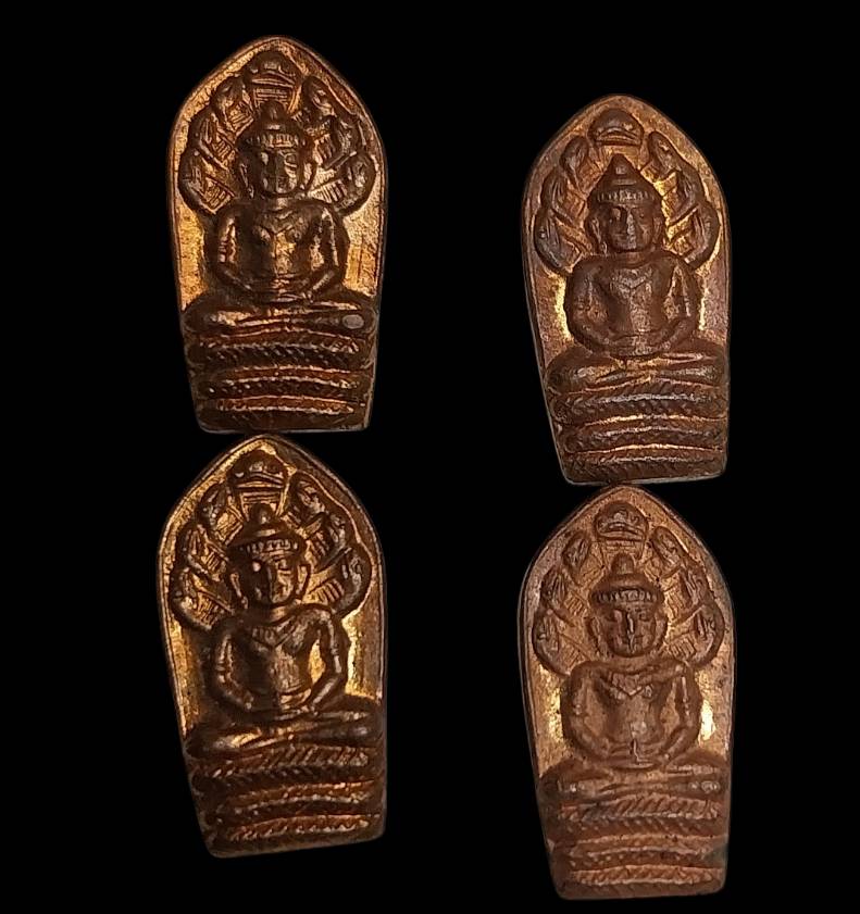 วัดใจ100เคาะเดียวแดงทุกรายการ เหรียญนาคปรกใบมะขามวัดพนันเชิงเนื้อทองแดง38จำนวน4เหรียญ |