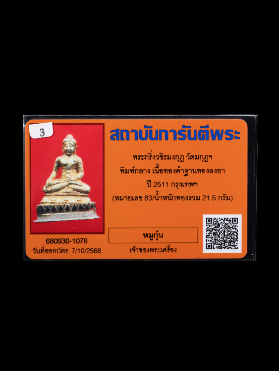 จ. - 13 ต.ค. 2568 - 20:08:50 น. (ถึงราคาขั้นต่ำแล้ว) |
