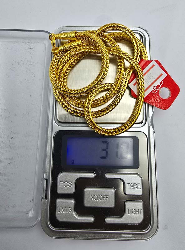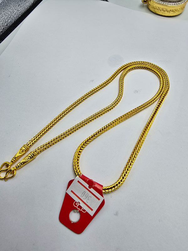 วัดใจสร้อยลาย สี่เสา ทองโคลนนิ่ง ยาว 24 นิ้ว น้ำหนัก ประมาณ 2 บาท ครับ |