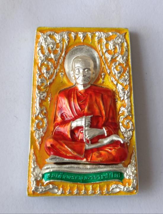 ชื่อพระเครื่อง วัดใจเคาะเดียวแดงจ้า สมเด็จพุทธศิลป์หลังสมเด็จโต ออกวัดระฆัง โดยตรง เนื้อบรอนซ์ชุบเงินลงยาเหลือง ชุดนำฤกษ์ หลังสมเด็จโตลงยา เคาะเดียวแดงจ้า