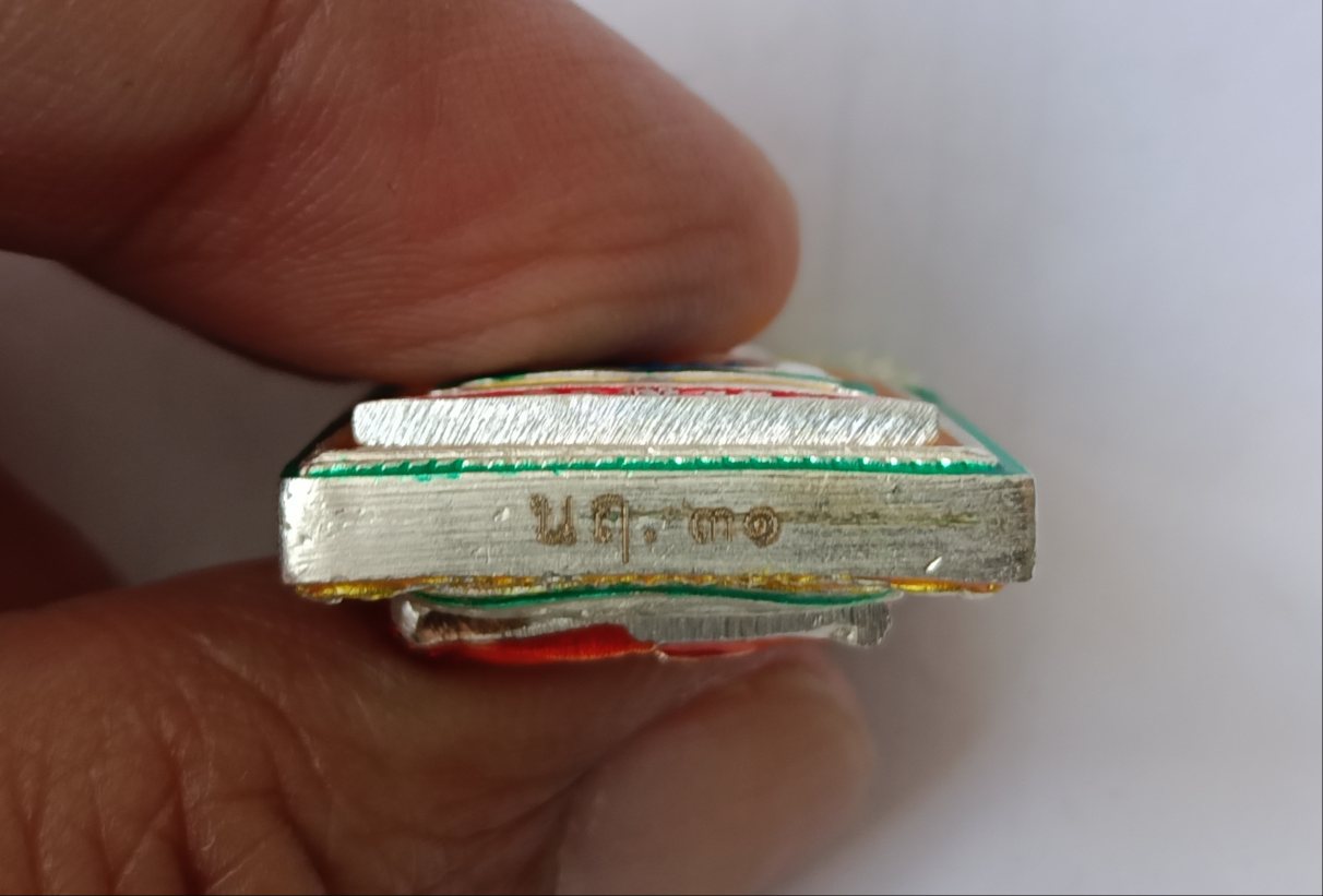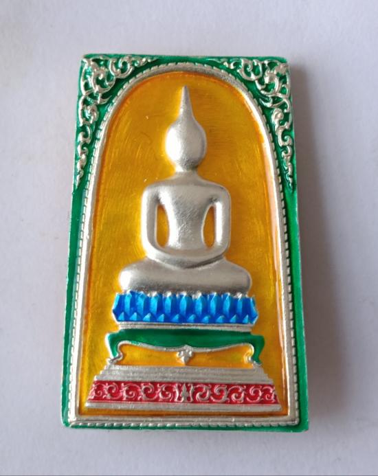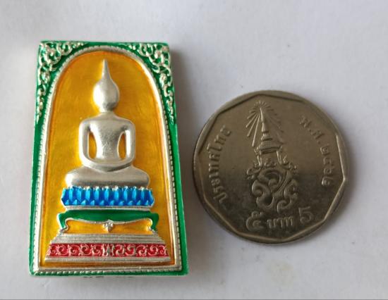 วัดใจเคาะเดียวแดงจ้า สมเด็จพุทธศิลป์หลังสมเด็จโต ออกวัดระฆัง โดยตรง เนื้อบรอนซ์ชุบเงินลงยาเหลือง ชุดนำฤกษ์ หลังสมเด็จโตลงยา เคาะเดียวแดงจ้า