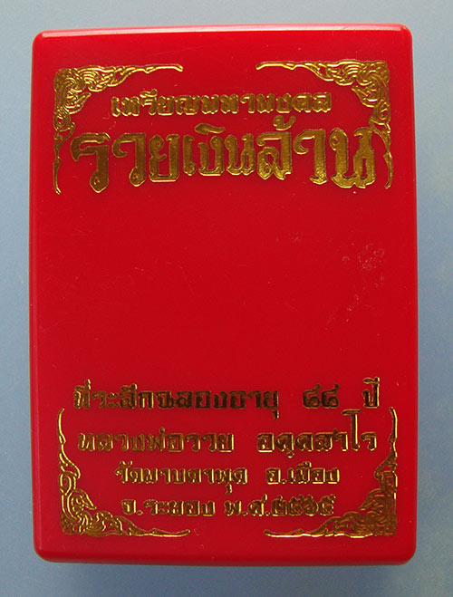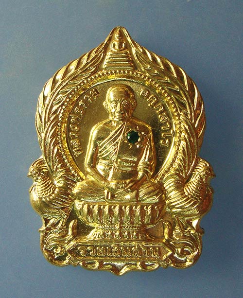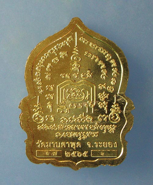 เหรียญนั่งพานมหามงคลรวยเงินล้าน เนื้อทองทิพย์ฝังพลอยมรกต หลวงพ่อรวย วัดมาบตาพุด จ.ระยองครับ