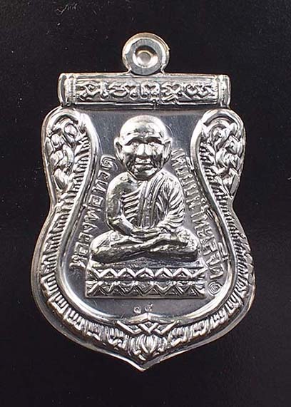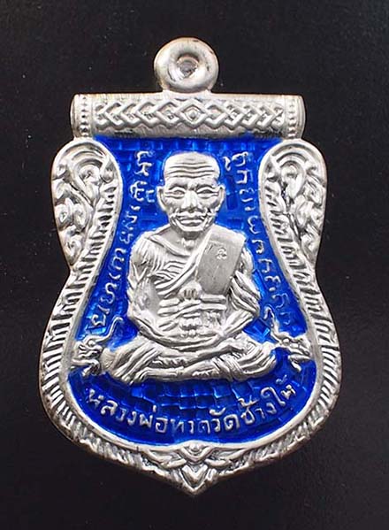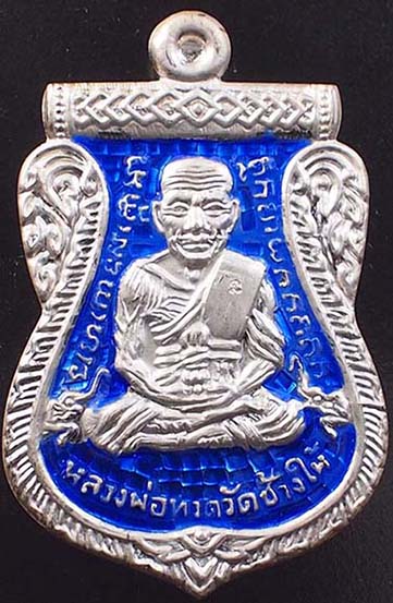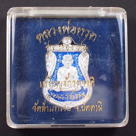 หลวงพ่อทวดรุ่นทอง 93 ( ยิ่งเลื่อน ยิ่งโต พิมพ์หน้าเลื่อนหลังหัวโต ) เหรียญจักรพรรดิ อาจารย์ทอง วัดสำเภาเชย จ. ปัตตานี เนื้อเงินลงยาน้ำเงิน หมายเลข 15 พร้อมกล่องเดิม