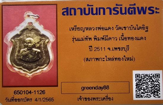 เหรียญแม่ทัพหลวงพ่อแดง วัดเขาบันไดอิฐ กะไหล่ทอง ปี2511 พร้อมเลี่ยมทอง และบัตรรับรอง