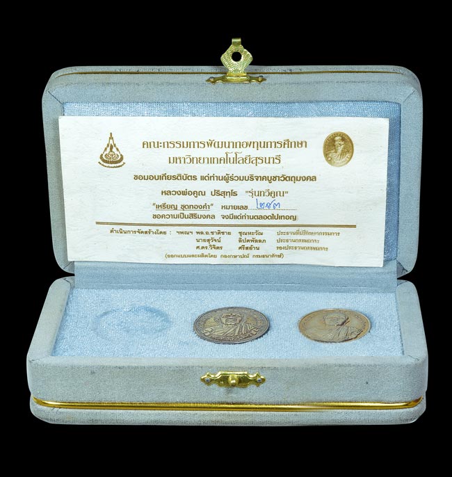 -ผู้จัดสร้าง : ฯลฯ พลเอก ชาติชาย ชุณหวัณ ( ประธานในพิธี ) , ส.ส.สุวัฒน์ ลิปตพัลลภ ( ประธานจัดงาน ) , ศ.ดร.วิจิตร ศรีสอ้าน , คณะกรรมการพัฒนากองทุนเพื่อการศึกษามหาวิทยาลัยเทคโนโลยีสุรนารี