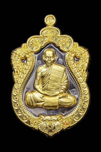 @@@ เสมาหัวเสือรุ่นแรก รวยมหาเศรษฐีหลวงพ่อสิน (แจกกรรมการ) วัดละหารใหญ่ เนื้อนวะโลหะ หน้าทองคำ ขอบทองคำ โค๊ต ๙ เก้าตัว หมายเลข ๒๗ รวมได้ ๙ (เลขมงคล) สร้าง ๒๙