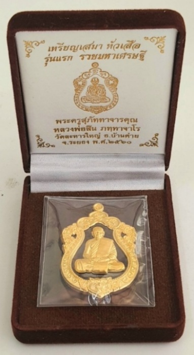 เสมาหัวเสือรุ่นแรก รวยมหาเศรษฐีหลวงพ่อสิน (แจกกรรมการ) วัดละหารใหญ่ เนื้อนวะโลหะ หน้าทองคำ ขอบทองคำ โค๊ต ๙ เก้าตัว หมายเลข ๒๗ รวมได้ ๙ (เลขมงคล) สร้าง ๒๙ พระหลักอนาคตไกล รับประกันตามกฎ