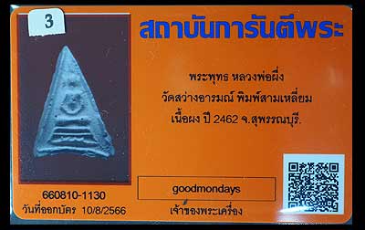 พระผงพิมพ์สามเหลี่ยม ปี2462 หลวงพ่อผึ่ง วัดสว่างอารมณ์ สุพรรณบุรี