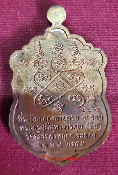 เหรียญเสมา 7 รอบ หลวงพ่อสิน เนืื้อทองแดง ตอกโค๊ต 5 ศาลา หมายเลข 405 พ.ศ.2555 วัดละหารใหญ่ จังหวัดระยอง |