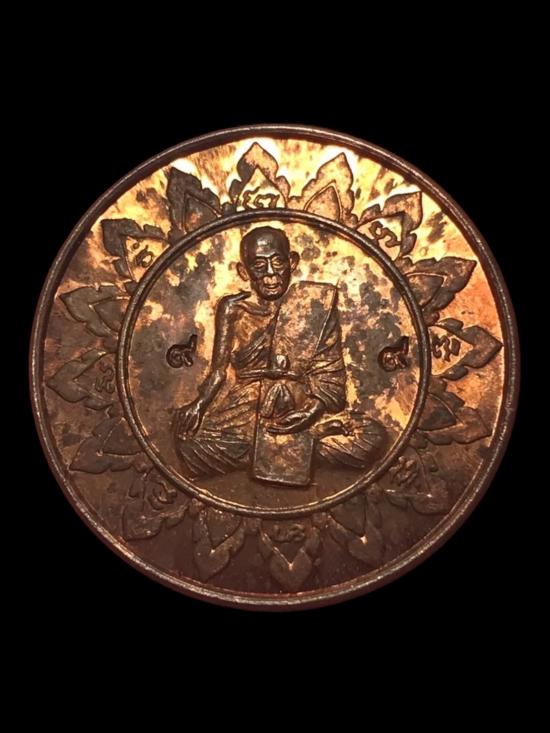 เหรียญบูชาคุณ หลวงปู่ศุข ยันต์นะฤชา เนื้อทองแดง หลวงพ่อชำนาญ วัดบางกุฎีทอง ปี 2546 ตอกโค๊ต ๙๙ |