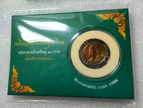 แพ็คกรม เป็นเหรียญตัวติดผลิตน้อย 10บาท2สี ปี2531