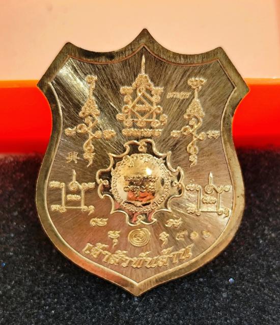 เหรียญท้าวมหาพรหม รุ่นเจ้าสัวพันล้าน(บอย ท่าพระจันทร์) เนื้อสัตตะโลหะ ลงยาพื้นน้ำเงินขอบแดง พิมพ์กรรมการ ขอบลายกนก เลขโค๊ต ๕๑๖ พร้อมกล่องเดิม |