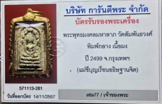 พระนาคปรกมงคลมหาลาคุณแม่บุญเรือน พระพุทธมงคลมหาลาภ พิมพ์กลาง ไม่มีทองแล้วนะครับ + บัตร