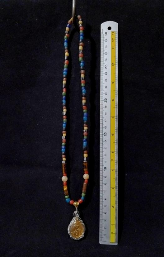 ชื่อพระเครื่อง ร้อยลูกปัดใส่แล้วดูดีมีรสนิยม ประกอบด้วยลูกปัดคละสี เม็ดดุม 4 เม็ด ยาว 22 นิ้ว แขวนพระได้ 1 องค์