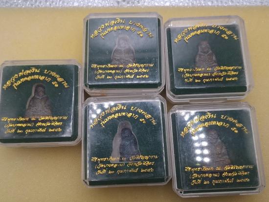 (((วัดใจ)) 5 องค์ รูปเหมือนหลวงพ่อเงิน วัดบางคลาน"มงคลมหาลาภ51"ปี2552 เนื้อทองเหลือง "โค๊ต บ.ค.๕๒"แจกเฉพาะชุดจอง+กล่อง |