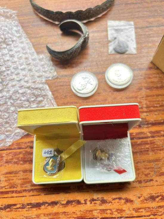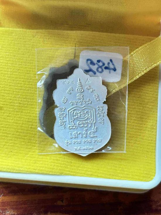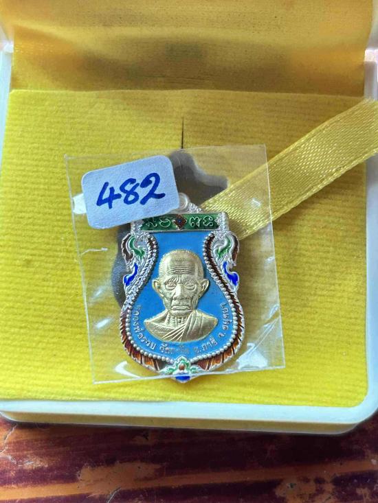 เหรียญเสาร์ ๕ รวยรวยรวย ปี63 เนื้อเงินลงยาสีฟ้าหน้ากากทองคำ พิมพ์ใหญ่ เลข 482 สร้างน้อย 555 องค์ ออกวัดตะโก |