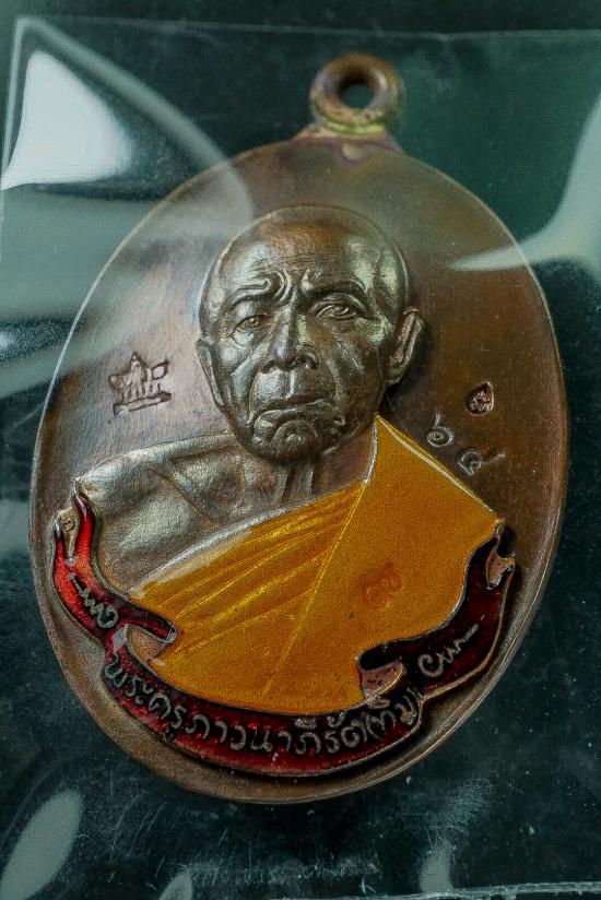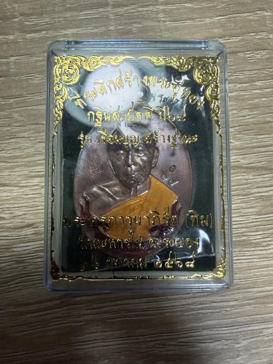 เหรียญห่วงเชื่อม68 เชื่อมบุญ สร้างฐานะ เนื้อทองแดงหน้ากากชนวน ลงยาจีวรเหลือโบว์แดง เลข64 แยก จากชุดเจ้าภาพหินอ่อน (สร้าง100เหรียญ)
